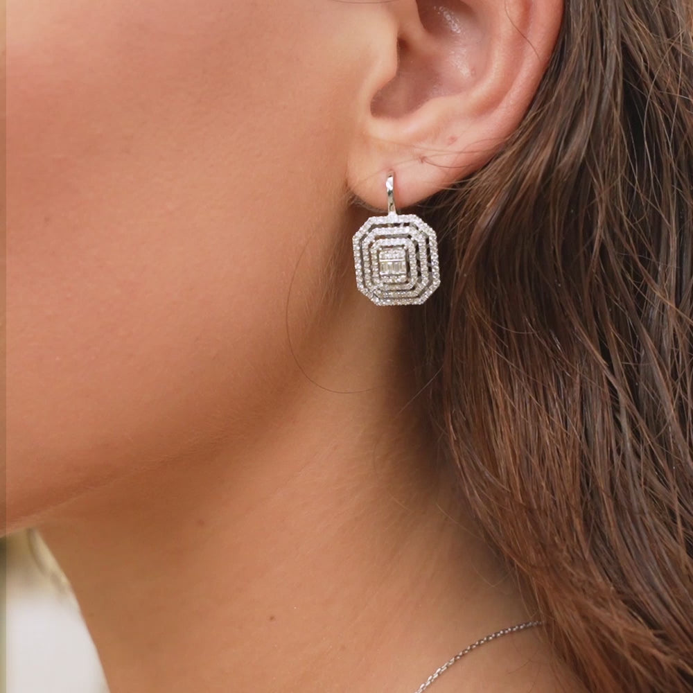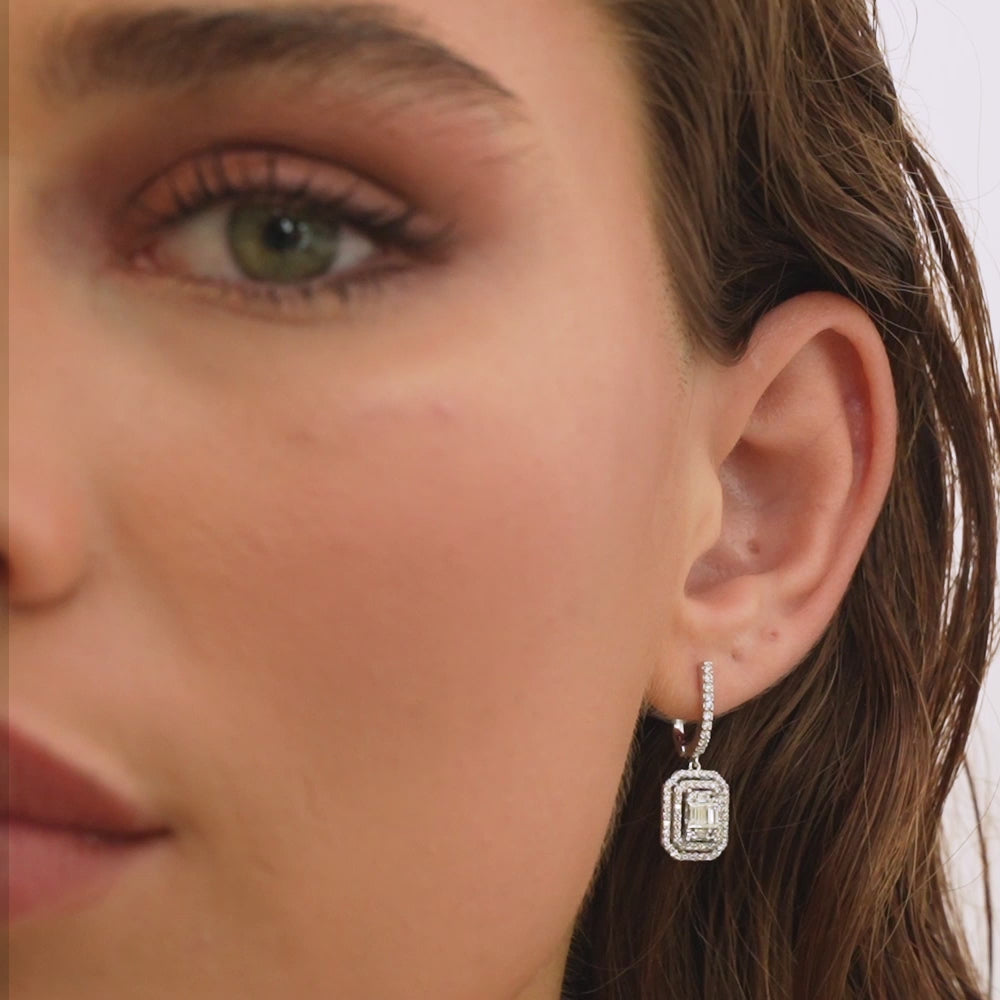 14K White Gold Emerald & Diamond Earrings — 0.65 ct Emerald · 0.70 ct Diamonds