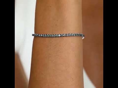 14K white gold Tennis Bracelet, with 1.81 ct blue diamonds, is a charming piece that combines the delicate sparkle of diamonds with unique blue tones. Its sophisticated design makes it a perfect choice to add a touch of color and refinement to your outfits. Karat: 14K, Diamonds: 1.81 ct, Color: F, Clarity: FS1
