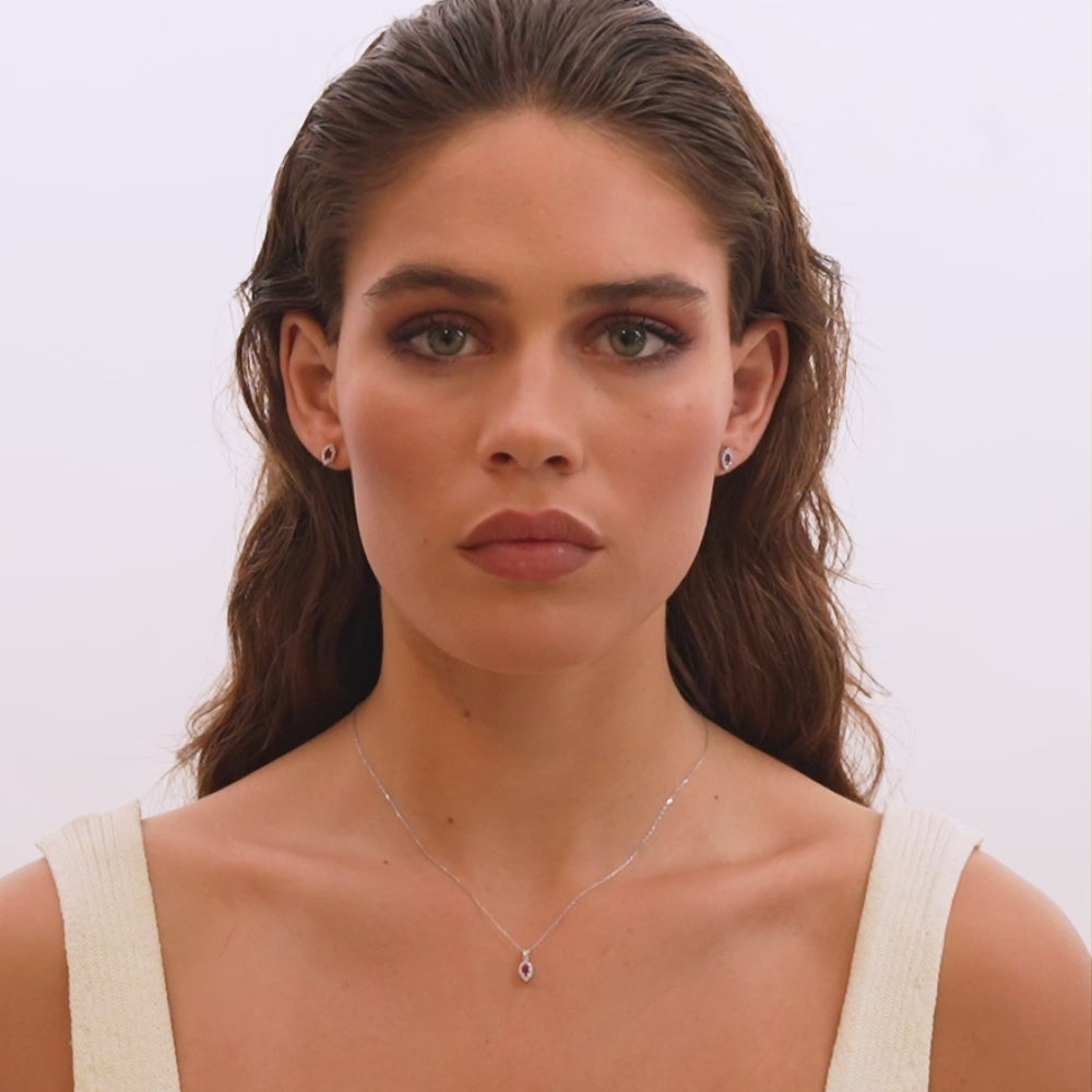 14K White Gold Ruby & Diamond Pendant Necklace — 0.17 ct Ruby · 0.05 ct Diamonds