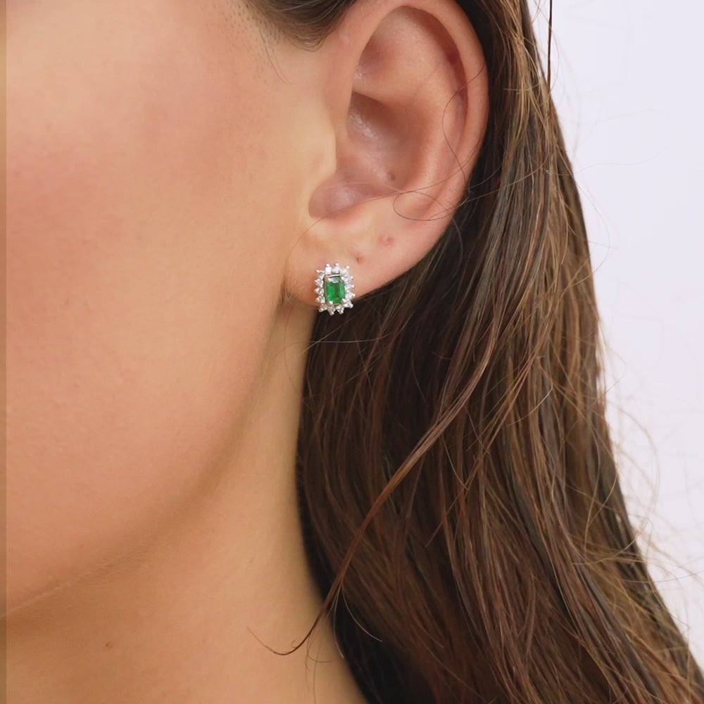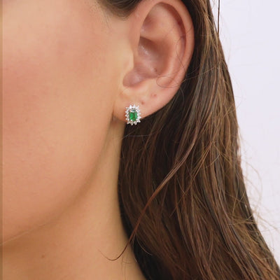 14K White Gold Emerald & Diamond Earrings — 0.84 ct Emerald · 0.23 ct Diamonds