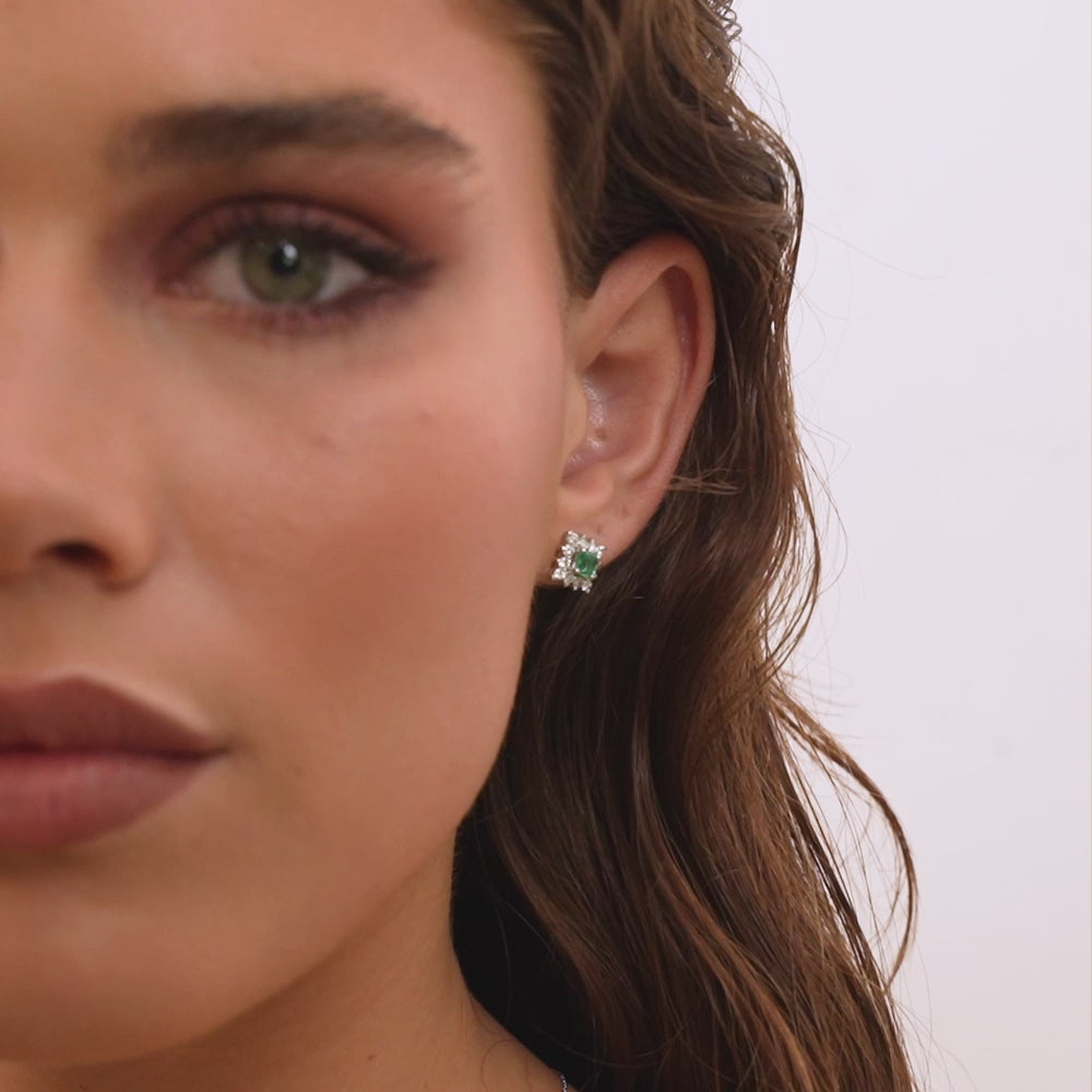 14K White Gold Emerald & Diamond Earrings — 0.65 ct Emerald · 0.70 ct Diamonds
