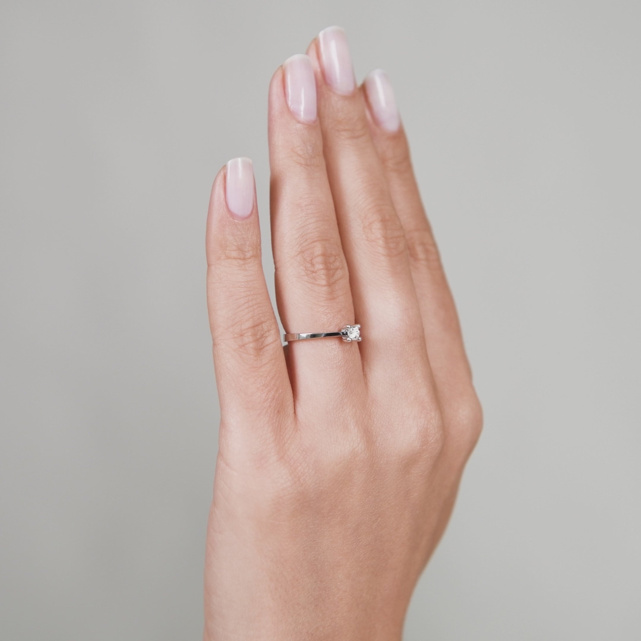 The 14K white gold Engagement Ring with 0.17 ct diamonds is a delicate piece of jewelry that combines understated elegance with a timeless design. The subtle sparkle of the 0.17 ct diamonds offers a unique charm, while the 14K white gold adds an extra touch of refinement. Perfect for marking special moments or for daily wear, this ring brings a hint of brilliance and sophistication to every important event in your life. Karat: 14K, Diamonds: 0.17 ct, Color: F, Clarity: FS1