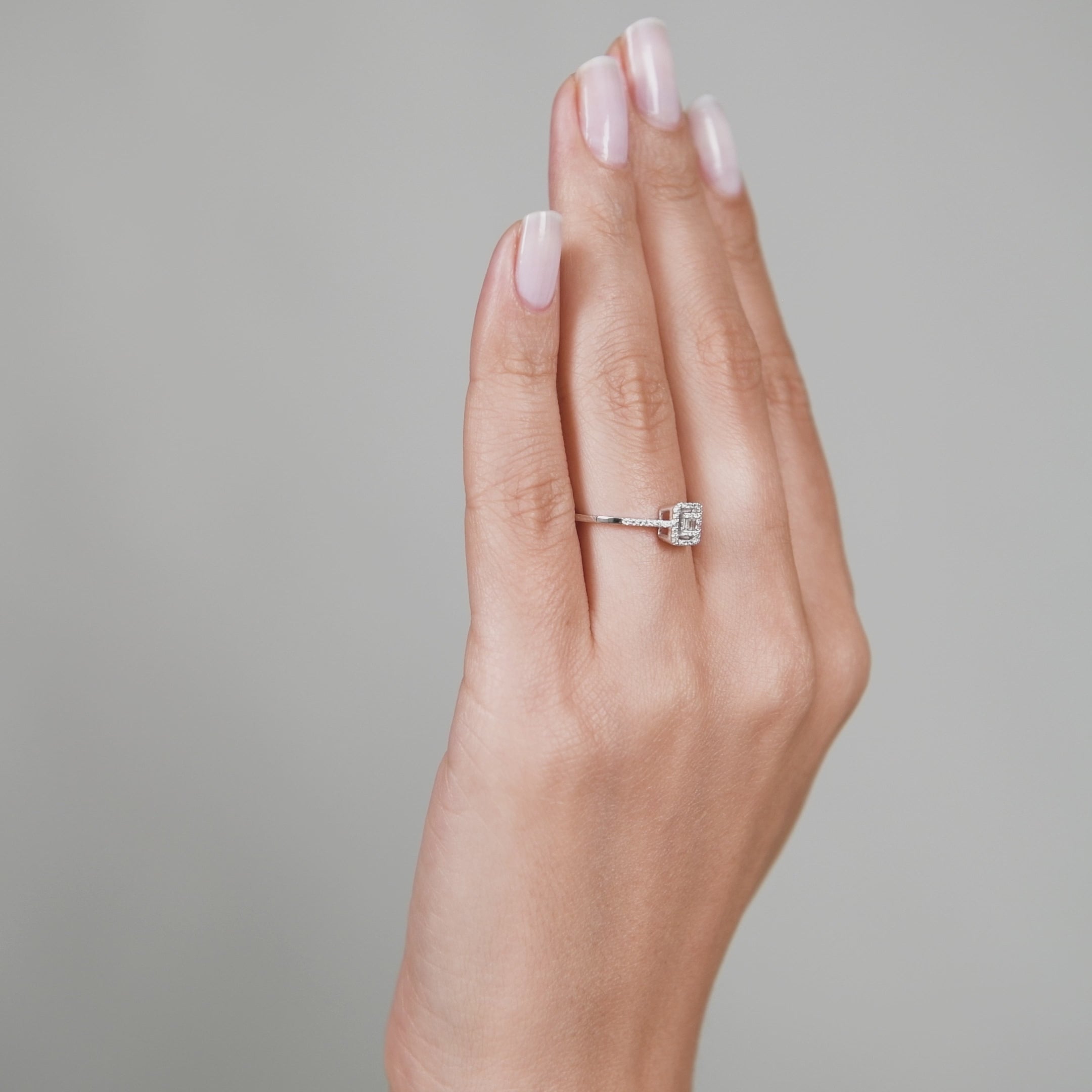 The 14K white gold Engagement Ring with 0.24 ct diamonds is a fine and sophisticated piece, perfect for adding a touch of sparkle to every special moment. With 0.24 ct diamonds, color F and clarity FS1, this ring offers an elegant shine, accentuated by the refinement of 14K white gold. Karat: 14K, Diamonds: 0.24 ct, Color: F, Clarity: FS1