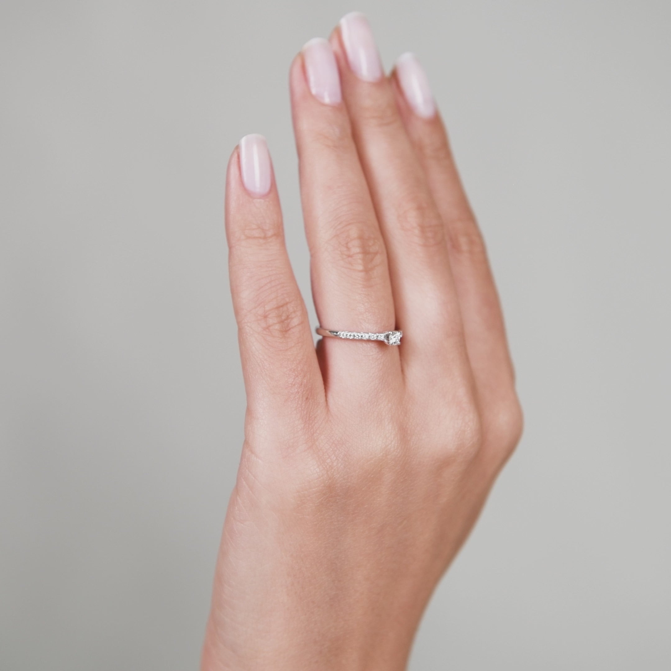 The 14K white gold Engagement Ring with 0.26 ct diamonds perfectly combines elegance with simplicity. The sparkling diamonds and carefully crafted design make this ring a unique piece, ideal for celebrating special events and creating lasting memories. Karat: 14K, Diamonds: 0.26 ct, Color: F, Clarity: FS1.