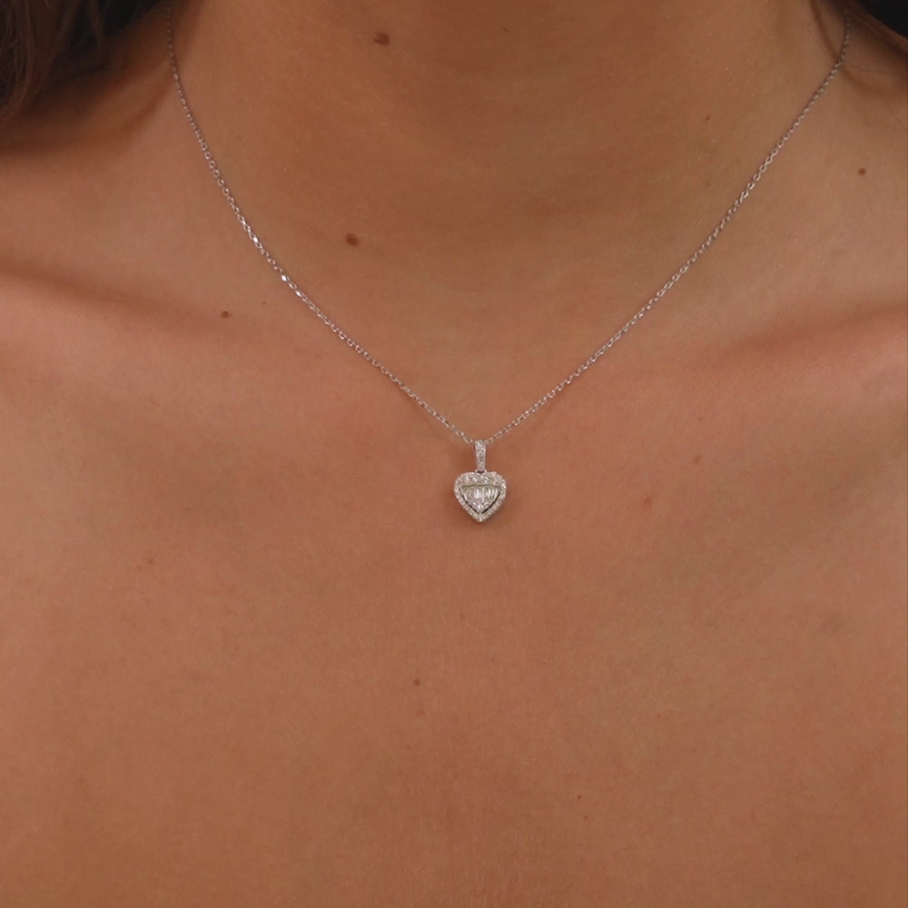 Chain with White Gold 14K Heart Pendant with 0.21ct Diamonds
