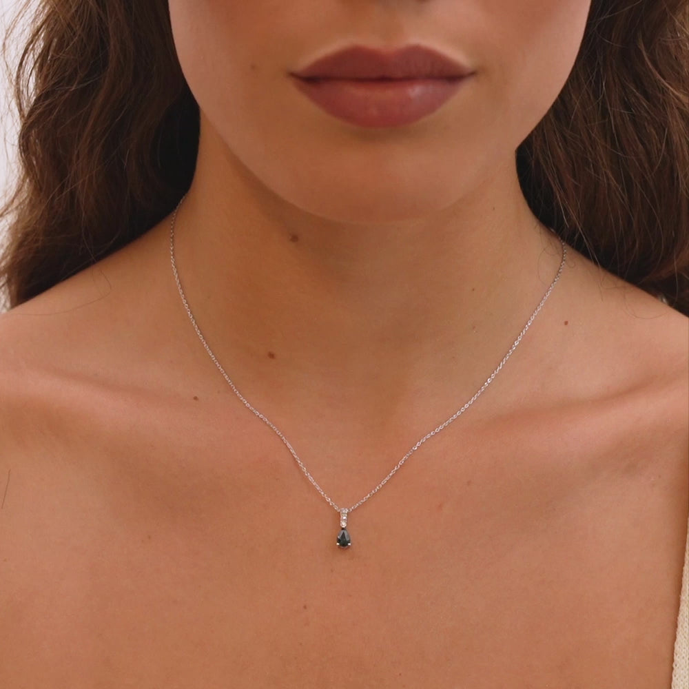 Chain with 14K White Gold Pendant with 0.03ct Diamonds and 0.55ct Sapphire