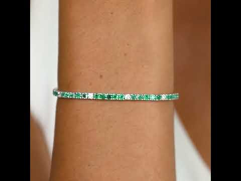 Impressive 14K White Gold Tennis Bracelet, with 0.75ct diamonds and 3.47ct emeralds, is a luxury jewel that attracts attention through the intensity of the emeralds and the sparkle of the diamonds. Its refined design adds a regal air to any outfit, being perfect for memorable events. Karat: 14k, Diamonds: 0.75ct, Color: F, Clarity: FS1, Precious stone: Emerald, Stone carat: 3.47ct