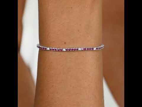 14K White Gold Tennis Bracelet, with 0.41ct diamonds and 2.33ct rubies, brings a spectacular combination of sparkle and color. The intensity of the rubies is harmoniously complemented by the elegance of the diamonds, offering a sophisticated and vibrant design, perfect for celebrating unique moments. Karat: 14k, Diamonds: 0.41ct, Color: F, Clarity: VS1, Precious stone: Ruby, Stone carat: 2.33ct