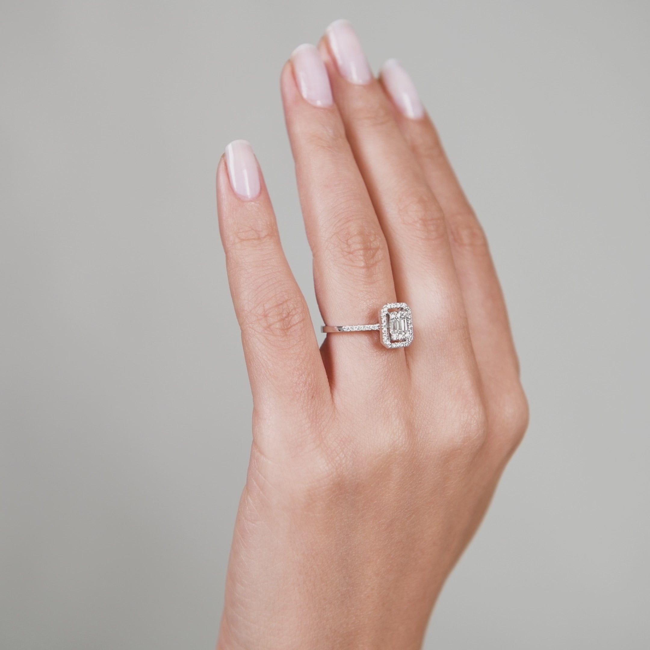 The engagement ring in 14K White Gold with 0.15ct Diamonds is a delicate and refined piece of jewelry, perfect for adding a subtle touch of elegance. The 0.15ct diamonds, carefully set, offer a sparkle, complementing the beauty of the 14K white gold. Karat: 14k, Diamonds: 0.15ct, Color: F, Clarity: FS1