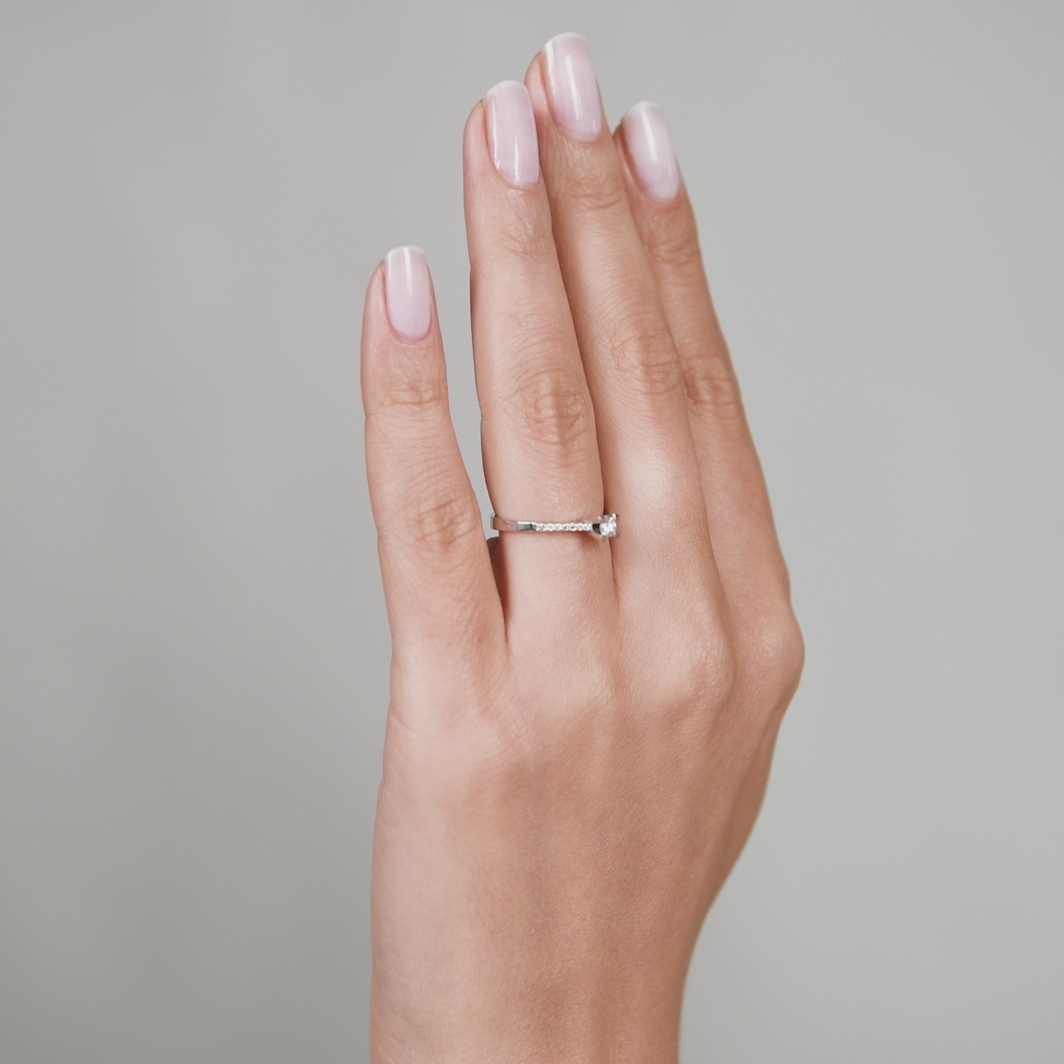 The 14K White Gold Engagement Ring with 0.20ct Diamonds is a remarkable piece of jewelry, designed to add a touch of elegance to any special moment. The sparkle of the 0.20ct diamonds is enhanced by the 14K white gold, creating a subtle yet impactful contrast that draws the eye. Karat: 14k, Diamonds: 0.20ct, Color: F, Clarity: FS1.